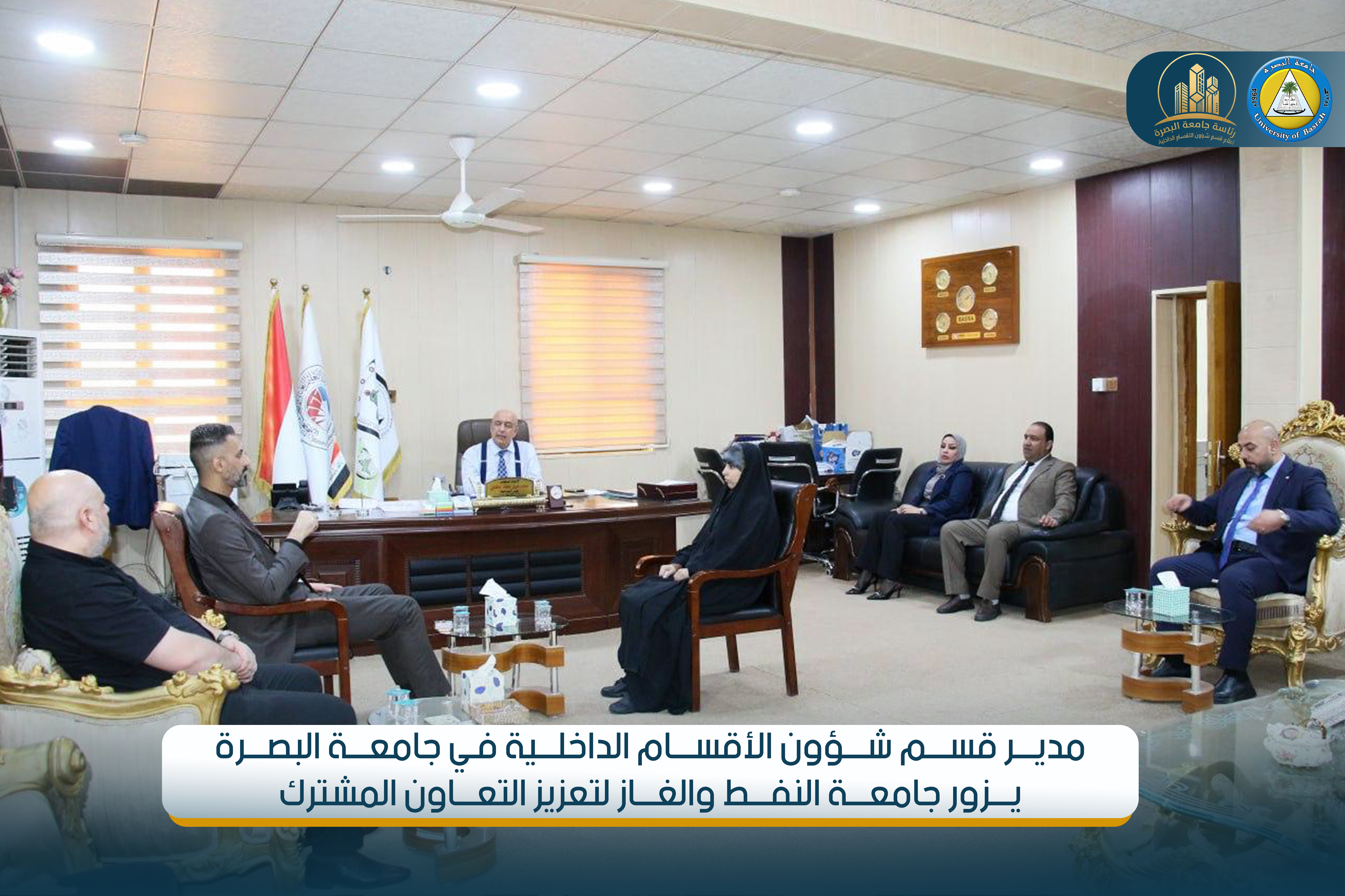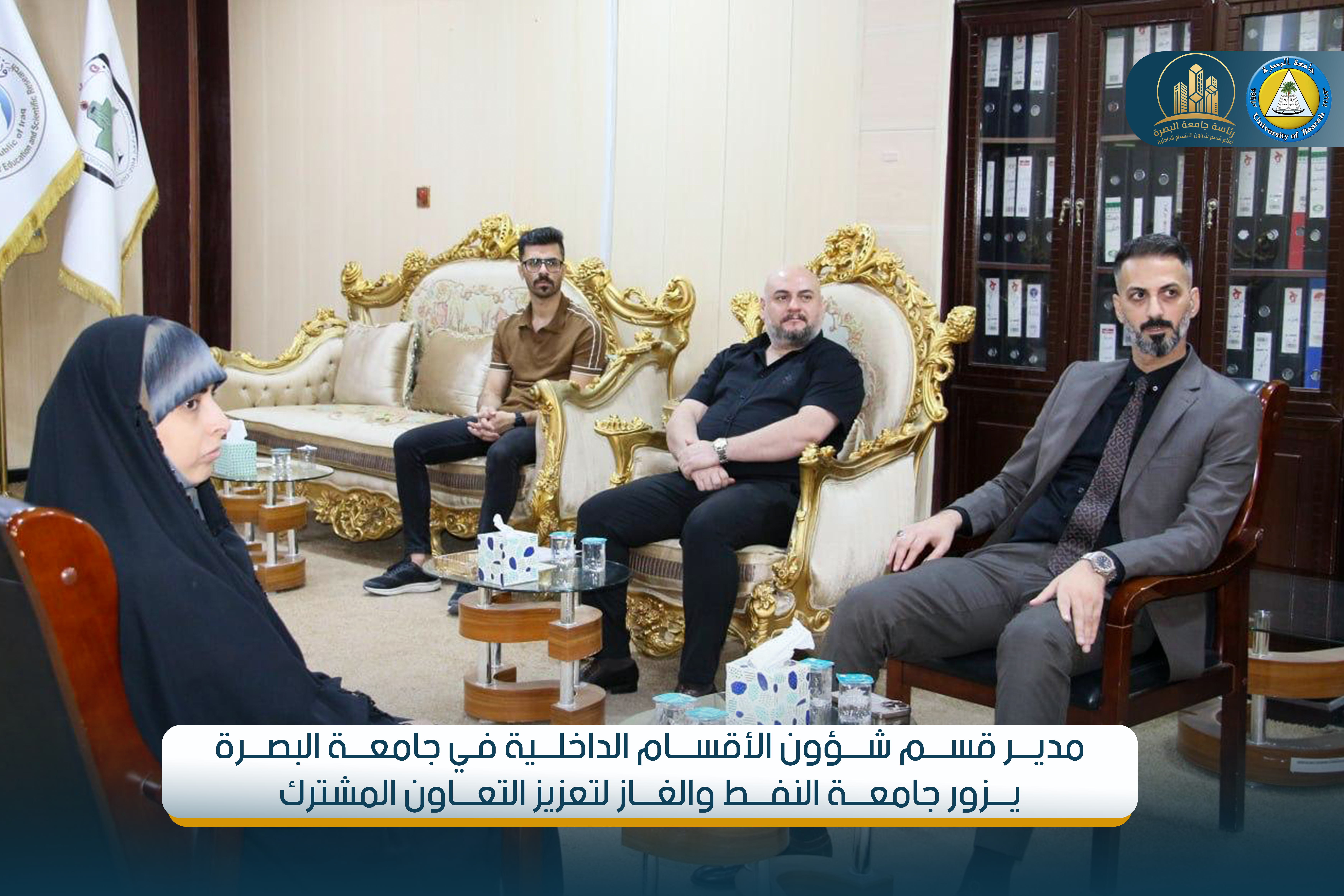 As part of communication and cooperation between Iraqi universities, the Director of the Department of Internal Affairs at the University of Basra visited the University of Oil and Gas. He was received by the President of the University of Basra, Professor Dr. Mohammed Halil Al-Kaabi, and a number of university officials.