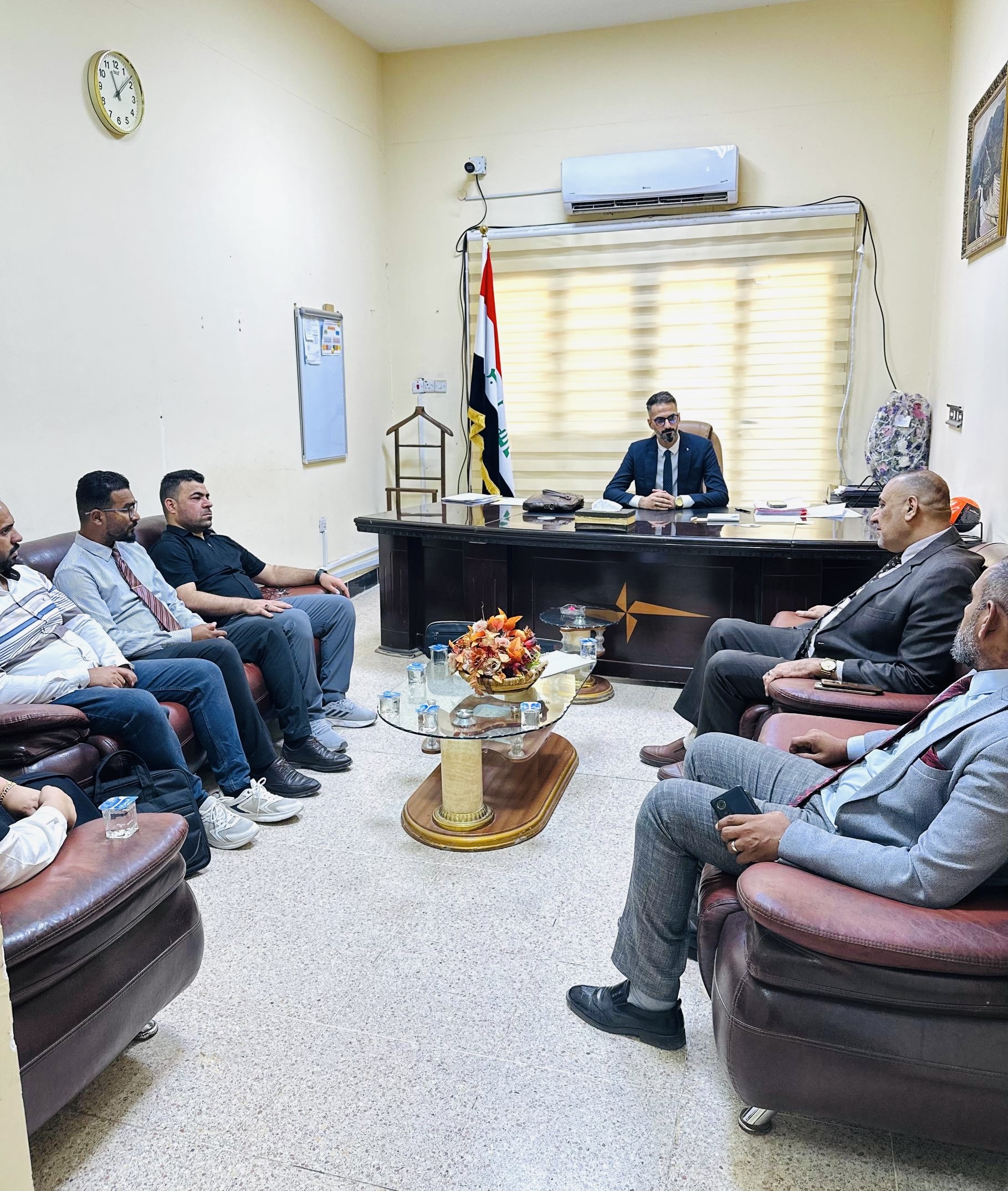 The Department of Internal Affairs at the University of Basra received a delegation from the College of Oil and Gas Engineering. The visit aimed to enhance administrative and student communication, monitor the living conditions of students living in residential complexes, and review the services provided to them.
