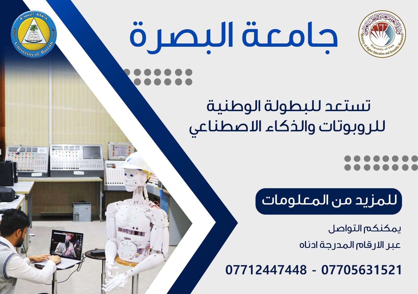 The Ministry of Higher Education and Scientific Research is preparing to launch the National University Robotics and Artificial Intelligence Applications Championship, with the participation of Iraqi universities. The championship aims to develop students' skills in advanced technologies and promote a culture of engineering innovation.